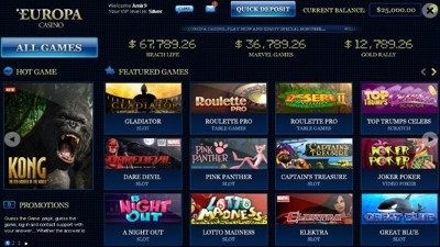 Powered by leading online gaming software provider Playtech, Europa Casino offers more than 400 online casino games for players to choose from. Games include table games, card games, video poker, arcade games, scratch card games, live dealer games, slots and progressive jackpot games.